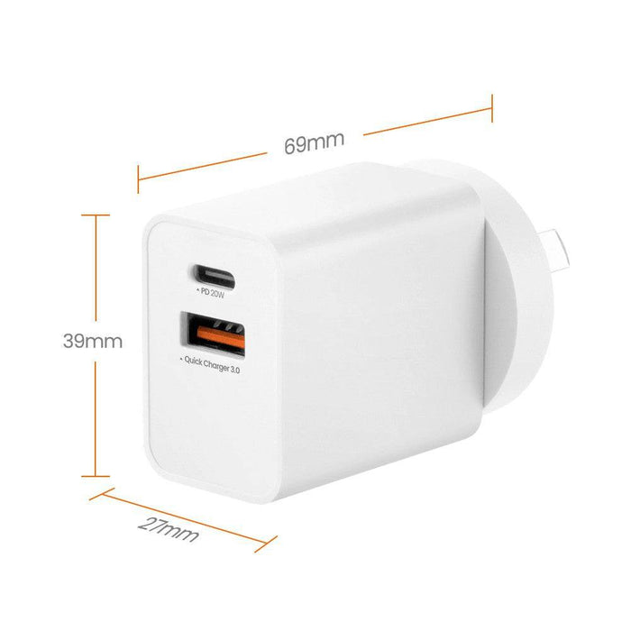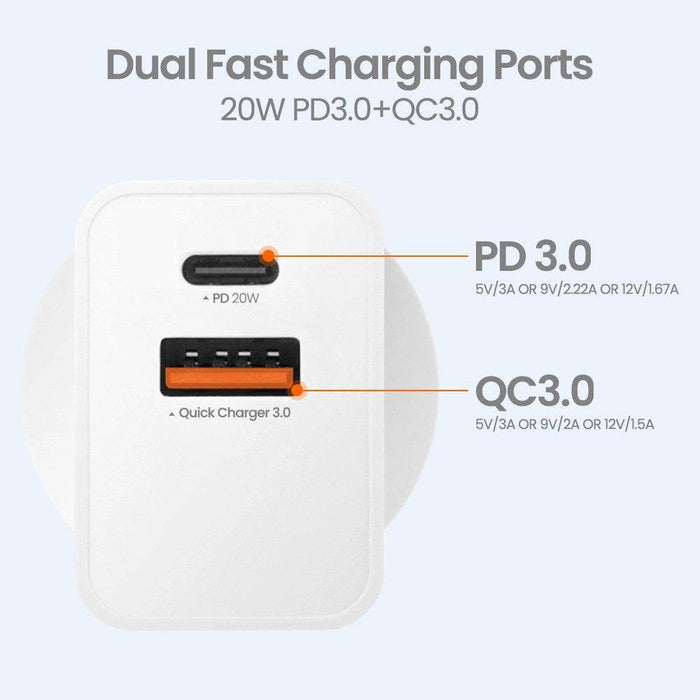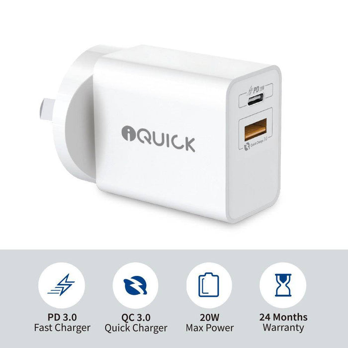 iQuick 20W PD3.0 + QC3.0 Fast Charging Adapter – White